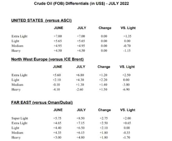 沙特國家石油公司阿美5日表示,將7月旗艦阿拉伯輕質(zhì)原油對(duì)亞洲的官方售價(jià)(OSP)較阿曼和迪拜基準(zhǔn)原油的平均價(jià)格溢價(jià)上調(diào)至6.50美元,高于6月份的4.40美元。運(yùn)往西北歐的阿拉伯輕質(zhì)原油官方售價(jià)(OSP)較布倫特原油平均價(jià)格溢價(jià)從之前的2.10美元上調(diào)至4.30美元。