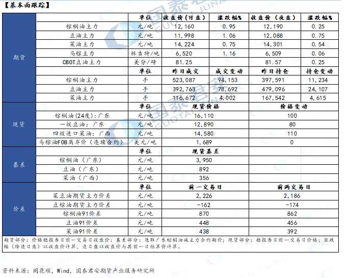 棕櫚油趨勢強度:0;豆油趨勢強度:0