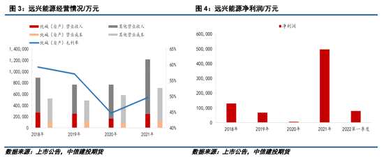 2021年遠興能源純堿、小蘇打、尿素生產(chǎn)裝置高效運行,產(chǎn)品銷售價格較上年大幅上漲。根據(jù)公司聚焦主業(yè)的戰(zhàn)略安排,2021年公司轉讓了博源煤化工70%股權,產(chǎn)生了大額非經(jīng)常性損益。2021年共實現(xiàn)營業(yè)收入1214853.27萬元,其中自產(chǎn)純堿營業(yè)收入占20.45%,即248377.07萬元;2021年共實現(xiàn)歸屬于上市公司股東的凈利潤495133.73萬元,同比增長7171.11%;其中純堿毛利率為49.68%,較2020年增加約5%。2022年一季度實現(xiàn)營業(yè)收入268111.52萬元,同比增長19.81%;歸屬于上市公司股東的凈利潤為79193.72萬元,同比增長137.79%。