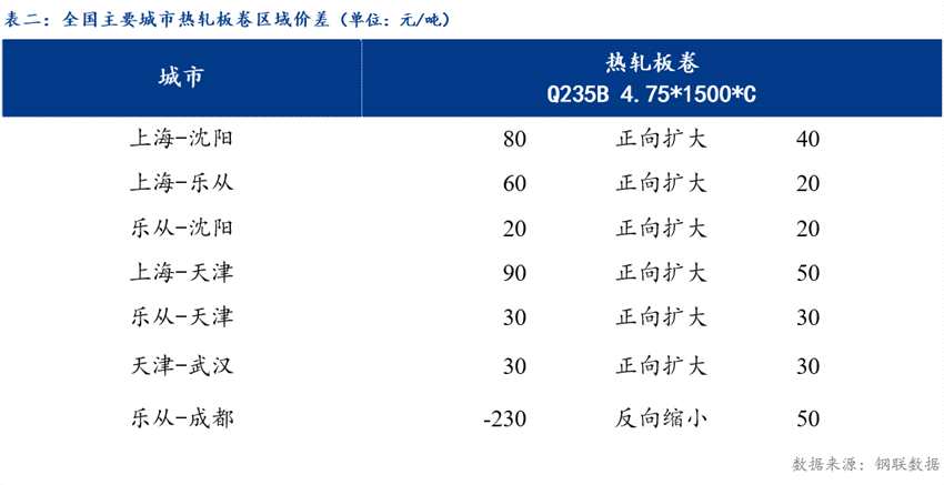 從區(qū)域價差來看,華東與東北價差80元/噸,較上一交易日擴大40元/噸;華東與華南價差60元/噸,較上一交易日擴大20元/噸;華南與華北價差30元/噸,較上一交易日擴大30元/噸。