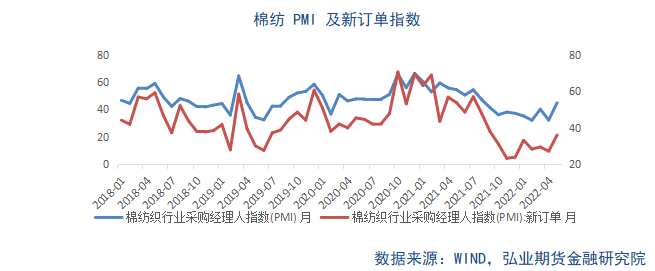 國(guó)內(nèi)棉紡PMI表現(xiàn)不佳,開工下降、庫(kù)存上升