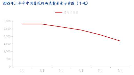 2022上半年葵花籽油消費呈偏弱運行的趨勢。在年初,葵油價格性價比較高,除本身包裝用之外,調(diào)和用油市場所占份額也較高,整體消費情況良好;自俄烏沖突之后,葵油價格一路飆升,價格與花生油可以一較高下,在傳統(tǒng)淡季及市場高價的影響下,消費需求持續(xù)減弱。