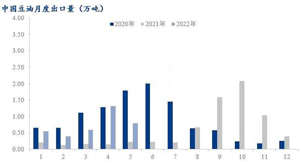 3.2 中國(guó)豆油月度出口量