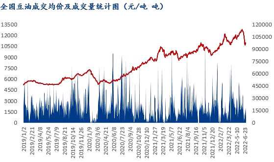 2022年上半年豆油價(jià)格可謂是“階梯式”上升,因不管是南美大豆預(yù)期由增變減,導(dǎo)致市場(chǎng)供需不平衡;還是俄烏沖突,國(guó)際原油價(jià)格上漲,帶動(dòng)油脂類價(jià)格上漲;以及全球?qū)ι锊裼托枨罅康牟粩嘣黾?,提振了油料及植物油的整體價(jià)格。然近期,隨著競(jìng)品油脂逐步走弱,國(guó)際原油不斷下挫,植物油脂由漲轉(zhuǎn)跌,因此從下半年來(lái)看,豆油價(jià)格,需關(guān)注美豆的減產(chǎn)及天氣情況對(duì)大豆的影響;競(jìng)品油脂棕櫚油及油菜籽的出口量情況,及國(guó)際原油的供給情況,還有豆油本身的基本面情況。