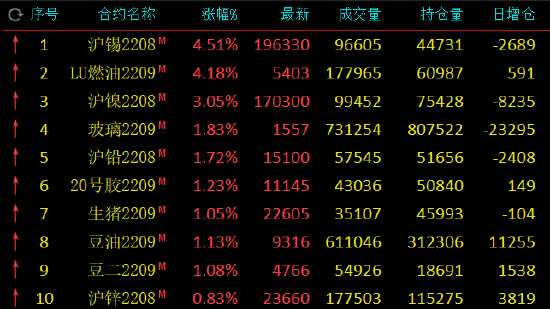 摘要: 7月12日,國內(nèi)期貨早盤主力合約多數(shù)下跌,生豬期貨沖高回落。甲醇跌超4%,鐵礦石、焦炭跌超3%,PTA、苯乙烯、棉花跌超2%。漲幅方面,滬錫、低硫燃料油漲超4%,滬鎳漲超3%。