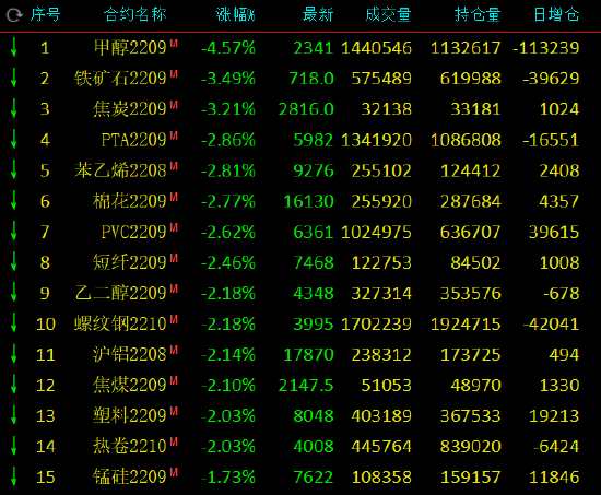 甲醇跌超4%,鐵礦石焦炭跌超3%,棉花跌超2%;滬鎳漲超3%,機構(gòu)解讀