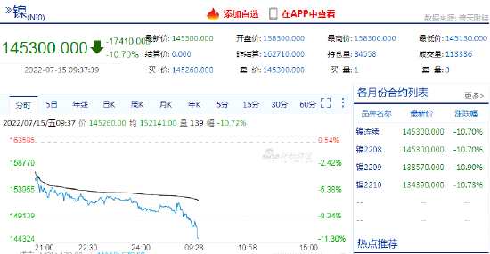 快訊:2022年7月15日,滬鎳期貨主力合約跌超10%,續(xù)創(chuàng)去年12月以來新低。