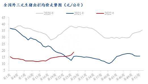 近期行情簡述:全國外三元出欄均價22.56元/公斤,較昨日價格下跌0.07元/公斤,最低價黑龍江21.50元/公斤,最高價廣東24.78元/公斤。