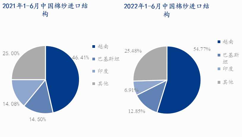 圖4 2021、2022年1-6月中國棉紗進(jìn)口結(jié)構(gòu)