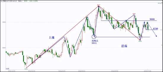 當(dāng)下,價(jià)格從8292開始的上漲段在逼近9000壓力后,橫向盤整,今日盤中跌破頸線8700,在后市沒有上行突破出現(xiàn)局部新高前,當(dāng)以空頭看待市場(chǎng),在小周期上跟隨下行節(jié)奏,尋找做空機(jī)會(huì)。