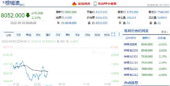 摘要: 2022年8月3日,早盤開盤,國內期貨主力合約漲跌不一,棕櫚油跌超3%,滬鎳、滬錫跌超2%;漲幅方面,液化石油氣(LPG)、苯乙烯(EB)、玻璃、焦煤、大豆?jié)q超1%。