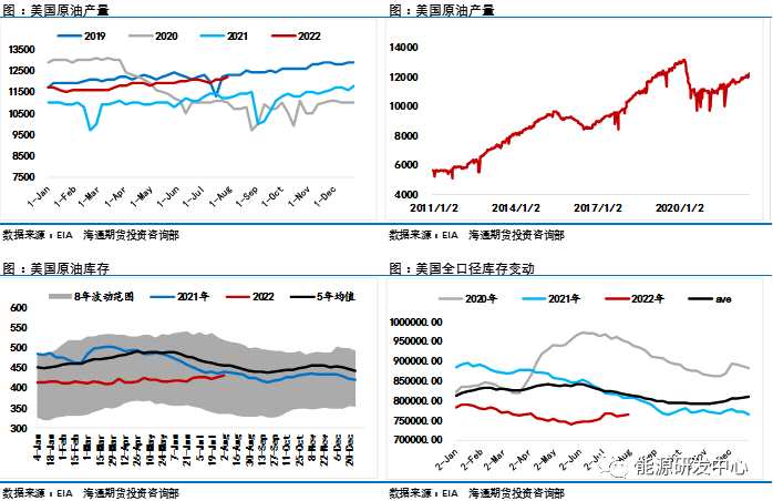 周四OPEC和國際能源署7月月報也對外發(fā)布,有意思的是,OPEC和國際能源署對供需的調(diào)整出現(xiàn)了截然不同的變化,國際能源署上調(diào)了需求預期,邏輯是歐洲高溫刺激了需求,不過210萬桶/日的需求增量跟美國能源署預期基本一致;而OPEC則是下調(diào)了需求預期,因為其觀察到全球經(jīng)濟下行壓力明顯,隨著經(jīng)濟增速下調(diào)其將原油需求預期下調(diào)到了336萬桶。較年初下調(diào)幅度也超過了100萬桶/日。歐佩克月報中分析人全球經(jīng)濟普遍存在顯著的下行風險,2022年全球經(jīng)濟增長預測為3.1%(此前預測為3.5%),2023年全球經(jīng)濟增長預測為3.1%(此前預測為3.2%)。2022年全球原油需求增速預測為310萬桶/日(此前為336萬桶/日),2023年全球原油需求增速預測為270萬桶/日不變,認為全球石油市場本季度將出現(xiàn)過剩。歐佩克7月份石油日產(chǎn)量增加了16.2萬桶,達到2884萬桶。印度石油制品凈進口較上輪統(tǒng)計增加10萬桶/日至424萬桶/日,中國石油(601857)制品凈進口較上輪統(tǒng)計減少202萬桶/日至931萬桶/日,美國石油制品凈進口較上輪統(tǒng)計增加4萬桶/日至-93萬桶/日。二手資料顯示,沙特7月原油產(chǎn)量增加13.6萬桶/日,至1069.3萬桶/日,阿聯(lián)酋原油產(chǎn)量增加4.8萬桶/日,至313萬桶/日,科威特原油產(chǎn)量增加4.8萬桶/日,至277.3萬桶/日。尼日利亞原油產(chǎn)量減少0.6萬桶/日,至117萬桶/日。伊拉克原油產(chǎn)量增加2.4萬桶/日,至449萬桶/日。利比亞原油產(chǎn)量減少2.3萬桶/日,至62.1萬桶/日。委內(nèi)瑞拉原油產(chǎn)量減少4.5萬桶/日,至66.5萬桶/日。伊朗原油產(chǎn)量減少1.6萬桶/日,至255.3萬桶/日。