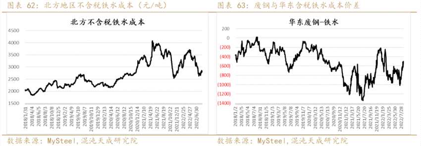 1. 鐵水成本及與廢鋼價(jià)比較:本周北方鐵水成本小幅上升,環(huán)比上周增14元至2802元/噸。由于華東廢鋼價(jià)格漲幅較大,廢鐵價(jià)差有明顯收窄,目前長(zhǎng)流程相對(duì)短流程生產(chǎn)更有優(yōu)勢(shì)。