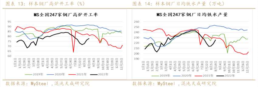 1. 高爐生產(chǎn)情況:本周鋼廠高爐復(fù)產(chǎn)進(jìn)一步增多,高爐開工率環(huán)比增1.66%至77.9%,日均鐵水產(chǎn)量環(huán)比也大幅增加7.11萬(wàn)噸至225.78萬(wàn)噸,但仍處于近年同期的低位。