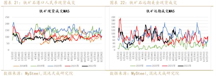 4. 成交情況:鋼廠復(fù)產(chǎn)增多,本周鐵礦港口現(xiàn)貨成交延續(xù)小幅增加,但遠(yuǎn)期美元貨成交有所回落。