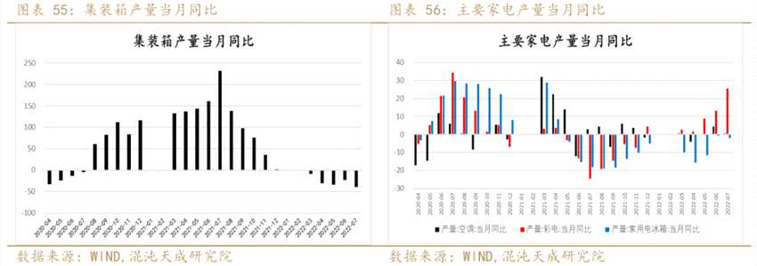 8. 集裝箱及家電:7月集裝箱產(chǎn)量同比下滑39%,家電除冰箱同比下降,其他同比仍有增長(zhǎng)。