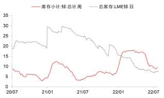 庫存:近期鋅錠庫存去化幅度較大,但是這并不是因為下游消費顯著轉(zhuǎn)好,而更可能是因為產(chǎn)量下降的幅度大于消費收縮的幅度。截至8.25日,LME庫存雖仍在8萬噸以下的歷史低位,但庫存環(huán)比7.29日已增長6625噸,在供應端暫無增量的情況下,海外消費弱勢顯現(xiàn)。