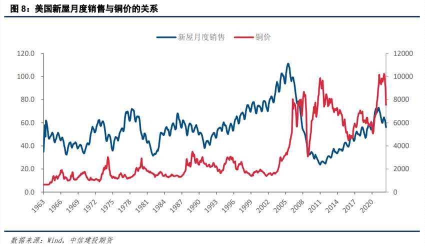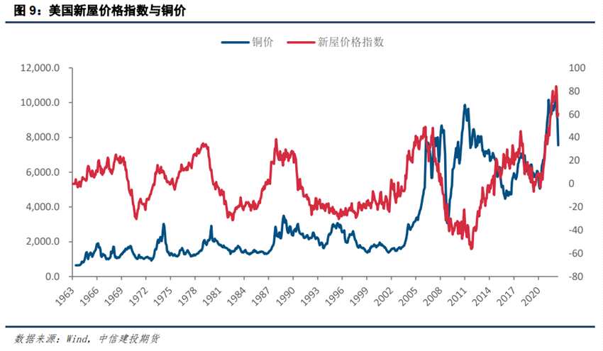 一方面,在美國,房地產(chǎn)市場消耗的銅是銅消費的重要組成部分,房地產(chǎn)市場進入下行階段,意味著美國市場銅需求存在轉(zhuǎn)弱可能。另一方面,房地產(chǎn)市場的強弱實際上也反映出經(jīng)濟形勢和貨幣環(huán)境,它的下行也代表著經(jīng)濟增長放緩、貨幣由松到緊。無論是從哪一個角度出發(fā),我們都有理由相信,美國房地產(chǎn)進入下行周期是對銅熊的一種確認。