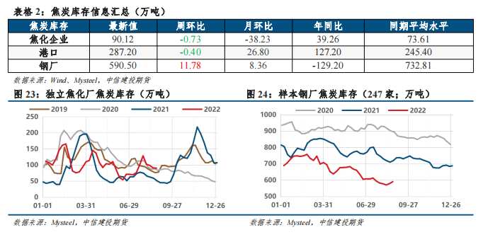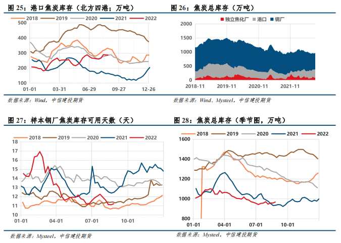 焦炭:焦企庫(kù)存降幅收窄,鋼廠庫(kù)存加速補(bǔ)庫(kù),港口庫(kù)存略降;整體庫(kù)存無(wú)明顯變動(dòng),焦炭庫(kù)存驅(qū)動(dòng)中性。