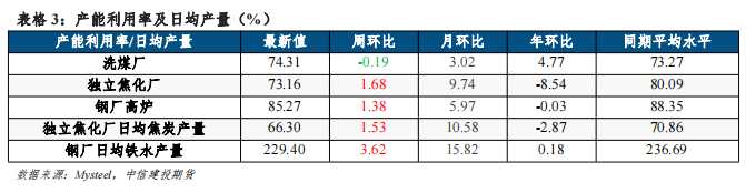 3.2 洗煤廠產(chǎn)能利用率略降,焦鋼產(chǎn)量比下滑