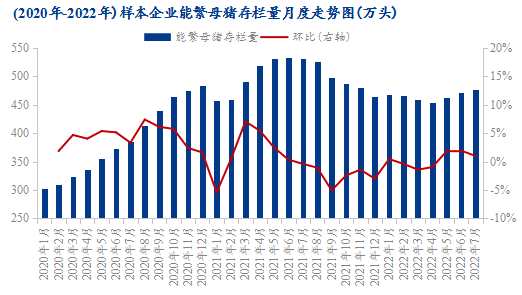 據(jù)Mysteel農(nóng)產(chǎn)品(000061)123家定點(diǎn)樣本企業(yè)數(shù)據(jù)統(tǒng)計顯示,2021年7月-2022年4月能繁環(huán)比都處于環(huán)比下滑,2021年9月環(huán)比下滑最大,為5.06%,這幾個月產(chǎn)能累計去化達(dá)到14.73%。從能繁母豬到商品豬出欄量時間周期為10個月來看,2022年4月仍處于能繁環(huán)比下跌過程,其對應(yīng)的生豬出欄時間為2023年2月,因此從供應(yīng)層面來看,2022年8月-2023年2月期間生豬供應(yīng)量依舊偏緊。同時從需求端來看,隨著天氣轉(zhuǎn)涼,未來迎來多個節(jié)假日,終端需求將處于逐漸恢復(fù)階段,疊加養(yǎng)殖場對于后市豬價看漲,挺價意愿較強(qiáng),雖未來豬價或受政策面影響出現(xiàn)階段性回調(diào),但前期多次現(xiàn)貨的回調(diào)難以下破下方支撐位,市場供應(yīng)偏緊局面得到較為有力的證實,未來豬價或仍處于高位震蕩階段。