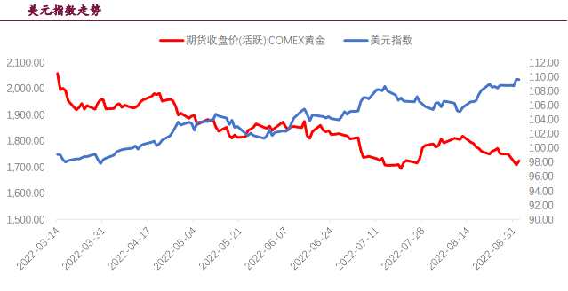 但我們預(yù)計(jì)9月伴隨著美元指數(shù)的持續(xù)上漲,金價(jià)將持續(xù)承壓。大概率將突破前期低點(diǎn),暫時(shí)看到1650美元。