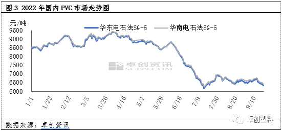 PVC是五大通用塑料之一,廣泛用于房地產(chǎn)、包裝、電線電纜、發(fā)泡材料等方面。其中與房地產(chǎn)關(guān)聯(lián)度最高,PVC下游制品中60%以上用于房地產(chǎn)相關(guān)。今年以來(lái)隨著房地產(chǎn)市場(chǎng)走弱,PVC需求轉(zhuǎn)差,供需矛盾增加,PVC價(jià)格從4月份以后高位下跌,跌幅明顯。