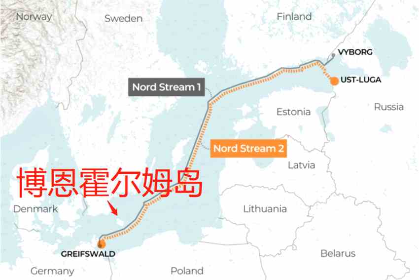 據(jù)悉,兩處泄漏點(diǎn)雖然分別位于瑞典和丹麥專屬經(jīng)濟(jì)區(qū),但實(shí)際上位置非常接近,都處于丹麥博恩霍爾姆島東北位置。更詭異的是,丹麥也在周一晚些時(shí)候報(bào)告途徑該島東南部的“北溪2號(hào)”天然氣管道出現(xiàn)泄露。兩條北溪管道在路線上完全處于平行的狀態(tài)。