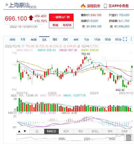 快訊:2022年10月10日,SC原油期貨價格漲超10%。