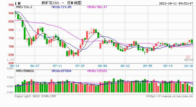 摘要: 昨日鐵礦石期貨主力合約i2301價(jià)格震蕩偏強(qiáng),收盤于739.5元/噸,較國慶節(jié)前收盤價(jià)上漲18元/噸,漲幅為2.49%,增倉7204手。港口現(xiàn)貨價(jià)格有所上漲,日照港(600017)PB粉價(jià)格環(huán)比上漲6