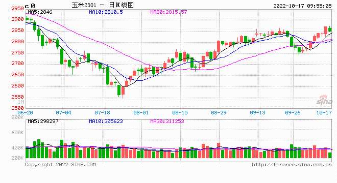 3、技術(shù)上,玉米1月合約周一突破2800元整理壓力之后,多頭勢(shì)力占優(yōu),短期價(jià)格延續(xù)震蕩偏強(qiáng)表現(xiàn)。玉米1月合約2850-2860是此前密集成交區(qū),期價(jià)短期考驗(yàn)前高壓力,若這一阻力價(jià)位有效突破上行節(jié)奏還將加快。整體來(lái)看,10月國(guó)際谷物報(bào)價(jià)高位震蕩,四季度國(guó)內(nèi)玉米延續(xù)先強(qiáng)后弱的價(jià)格預(yù)期。