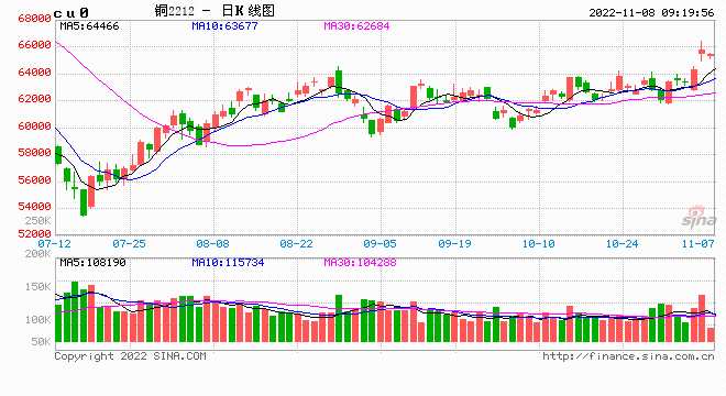 【現(xiàn)貨】11月7日SMM1#電解銅均價(jià)66410元/噸,環(huán)比+1770元/噸;基差-25元/噸,環(huán)比-145元/噸。廣東1#電解銅均價(jià)66485元/噸,環(huán)比+1850元/噸;基差80元/噸,環(huán)比-55元/噸。