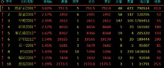 摘要: 11月18日早盤收盤,國內(nèi)期貨主力合約漲跌不一。低硫燃料油(LU)跌近5%,雞蛋跌超2%,SC原油跌近2%。漲幅方面,鐵礦石漲近3%,尿素、甲醇、硅鐵漲超2%?!竞暧^政策提振市場情緒,