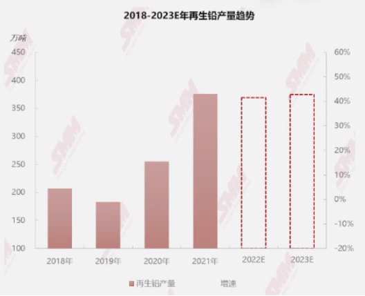 2018-2023E再生鉛產(chǎn)量趨勢表(數(shù)據(jù)來源:SMM)