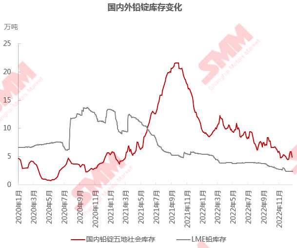 “2022年海外供應(yīng)短缺,近期LME鉛庫存處于近15年低位附近,國內(nèi)上半年受疫情等因素影響需求不振,相對外強內(nèi)弱的格局給了出口機會,下半年迎來鉛蓄電池傳統(tǒng)消費旺季,持續(xù)的出口助推鉛價不斷回升。”在12月28日舉辦的“SMM鉛產(chǎn)業(yè)高峰論壇”上,上海有色高級分析師夏聞鳴分析稱,三季度限電、疫情都對鉛市場造成影響,年底疫情防控優(yōu)化令市場對未來消費增添了向好預(yù)期。