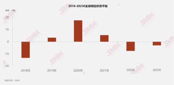 2018-2023E全球精鉛供應(yīng)平衡表(數(shù)據(jù)來源:SMM)