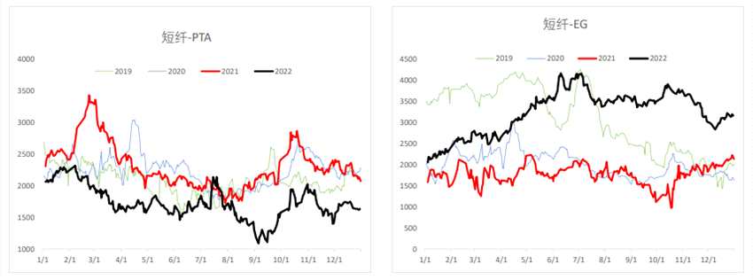 滌綸短纖與原料現(xiàn)貨價(jià)差