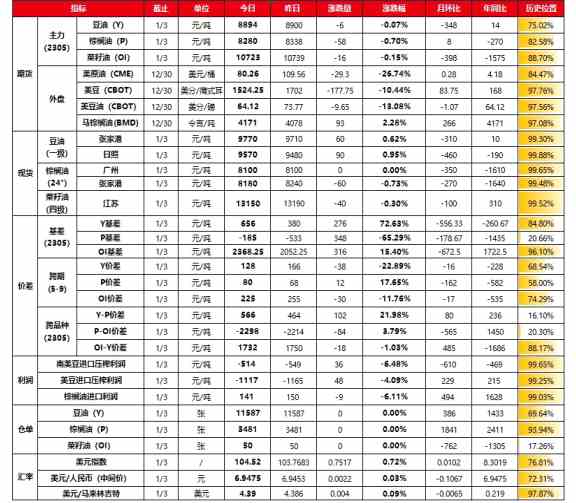 今日(1月3日)油脂期貨大幅走高,棕油領(lǐng)漲油脂。