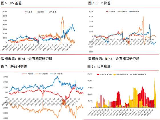 期貨方面,主力 Y2305 合約報(bào)收 8894 點(diǎn),漲幅 0.57%;P2305 合約報(bào)收8280 點(diǎn),漲幅 0.93%;OI2305 合約報(bào)收 10723 點(diǎn),跌幅 0.21%。