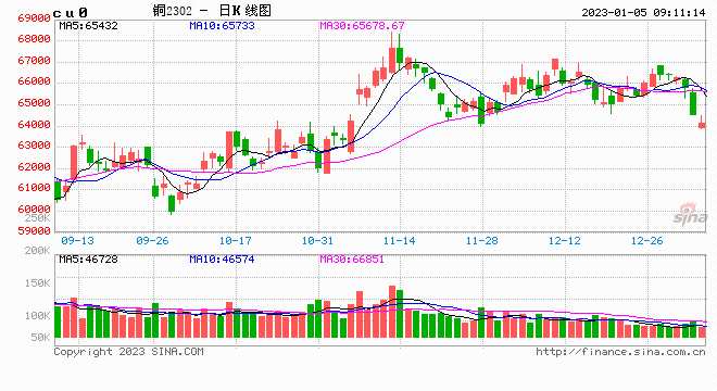 摘要: 銅:衰退預(yù)期升溫,淡季壘庫,現(xiàn)貨升水回落,關(guān)注64000支撐【現(xiàn)貨】1月4日SMM1#電解銅均價(jià)65135元/噸,環(huán)比-670元/噸;基差80元/噸,環(huán)比-110元/噸。