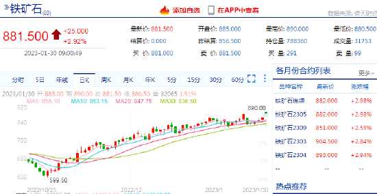 2023年1月30日,鐵礦石主力合約開盤漲超3%,創(chuàng)近半年新高。