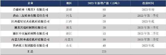 表格2 有機(jī)硅2023年新增產(chǎn)能投產(chǎn)情況