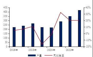 圖表11 工業(yè)硅年度產(chǎn)量和同比