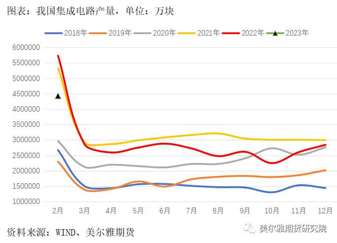 2023年1-2月我國(guó)集成電路產(chǎn)量同比大幅下滑17%,顯著低于2021年和2022年同期,未見(jiàn)回暖。有將近一半的精煉錫用于電子工業(yè)、消費(fèi)電子、半導(dǎo)體中的錫焊料,而半導(dǎo)體中的大部分領(lǐng)域目前仍處于主動(dòng)去庫(kù)的下行周期中,何時(shí)能走完下行周期重回增長(zhǎng)尚難以預(yù)期,無(wú)論如何短期內(nèi)無(wú)望消費(fèi)大幅反彈。部分市場(chǎng)觀點(diǎn)認(rèn)為2023年半導(dǎo)體周期有望見(jiàn)底;臺(tái)積電也預(yù)期,本輪半導(dǎo)體周期將在2023年上半年觸底,行業(yè)庫(kù)存逐步出清,下半年恢復(fù)增長(zhǎng)。世界半導(dǎo)體貿(mào)易統(tǒng)計(jì)組織(WSTS)發(fā)布預(yù)期稱,2023年全球半導(dǎo)體市場(chǎng)規(guī)模將同比減少4.1%,降至5565億美元。而國(guó)際半導(dǎo)體產(chǎn)業(yè)協(xié)會(huì)(SEMI)則預(yù)計(jì),全球半導(dǎo)體設(shè)備總銷(xiāo)售額在2023年將下降16.8%,DRAM設(shè)備銷(xiāo)售額在2023年將下降25%,SEMI表示,半導(dǎo)體行業(yè)景氣度低迷階段或?qū)⒙痈茫谇岸撕秃蠖思?xì)分市場(chǎng)的推動(dòng)下,全球半導(dǎo)體設(shè)備總銷(xiāo)售額將在2024年才會(huì)出現(xiàn)反彈。