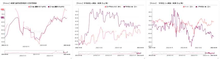 3月中下旬,原油價(jià)格跌至低點(diǎn)后回升,受能源上漲和調(diào)油需求季節(jié)性回升,二甲苯價(jià)格重心逐步上移,MX-石腦油價(jià)差持續(xù)維持高位。