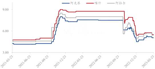 對(duì)于2022/23年度來(lái)看,10至12月初,新冠病毒防控措施使得主要批發(fā)市場(chǎng)出現(xiàn)階段性關(guān)停,終端消費(fèi)較為低迷,紅棗消費(fèi)呈現(xiàn)旺季不旺的特點(diǎn)。12月中下旬以來(lái),疫情帶來(lái)的不利影響消退,終端年前備貨啟動(dòng),紅棗走貨情況較前期出現(xiàn)明顯好轉(zhuǎn)。紅棗作為非必需消費(fèi)品,一旦錯(cuò)過(guò)節(jié)日需求,對(duì)消費(fèi)量影響明顯,且難以補(bǔ)回。春節(jié)后部分終端有二次補(bǔ)庫(kù)需求,疊加低價(jià)對(duì)走貨有一定促進(jìn)作用,市場(chǎng)走貨尚可。但整體來(lái)看,2022/23年度紅棗銷(xiāo)售進(jìn)度較正常年份偏慢。3月份天氣轉(zhuǎn)暖,紅棗步入季節(jié)性消費(fèi)淡季,紅棗消費(fèi)端或無(wú)明顯利好因素。中長(zhǎng)期關(guān)注端午節(jié)和中秋節(jié)節(jié)日備貨對(duì)紅棗消費(fèi)的階段性提振。