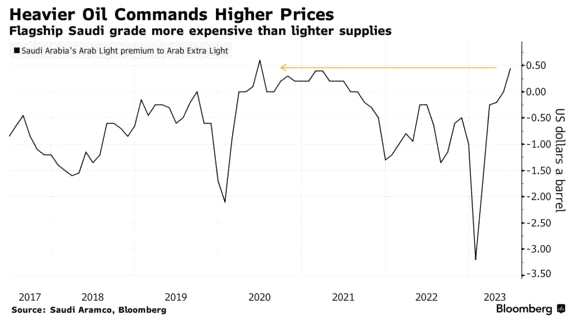 智通財經(jīng)注意到,亞洲和歐洲的石油買家不得不為質(zhì)量較低、污染較重的原油支付高昂的價格,因為對俄羅斯的制裁和歐佩克+減產(chǎn)減少了這些等級原油的供應(yīng)。