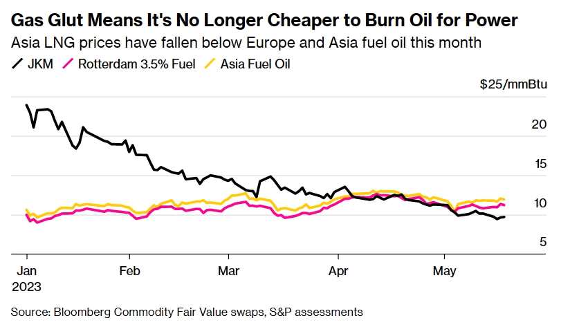 天然氣供過(guò)于求意味著燃燒石油發(fā)電不再便宜——本月,亞洲液化天然氣價(jià)格已低于歐洲和亞洲的燃料油價(jià)格