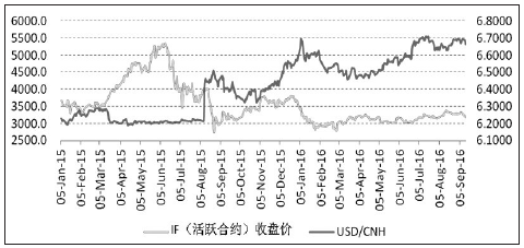 對(duì)于A股市場而言,歐美發(fā)達(dá)國家國債收益率(無風(fēng)險(xiǎn)利率)回升可能使得中國貨幣政策被動(dòng)收縮,因?yàn)槿绻袊鵁o風(fēng)險(xiǎn)利率低于歐美發(fā)達(dá)國家,那么可能引發(fā)新一輪大規(guī)模資金外流的風(fēng)險(xiǎn)。央行似乎也看到這點(diǎn),有意抬高做空離岸人民幣的成本。9月14日,人民幣香港隔夜拆借利率暴漲532基點(diǎn),至8.1617%,刷新2月來最高;7天期人民幣Hibor利率大漲523基點(diǎn),至10.152%。統(tǒng)計(jì)顯示,自2015年至今,滬深300期指收盤價(jià)和離岸人民幣匯率呈-0.7的相關(guān)性。