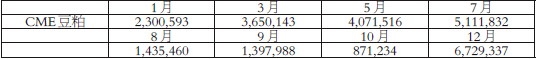 CME豆粕期權(quán)合約交割月前一月的年成交量為25,568,103手,3月、5月、7月、12月期權(quán)是最活躍的品種,可以看出,除12月的豆粕期權(quán)外,其余期權(quán)合約在距離交割月還有60天左右時間快速增加。